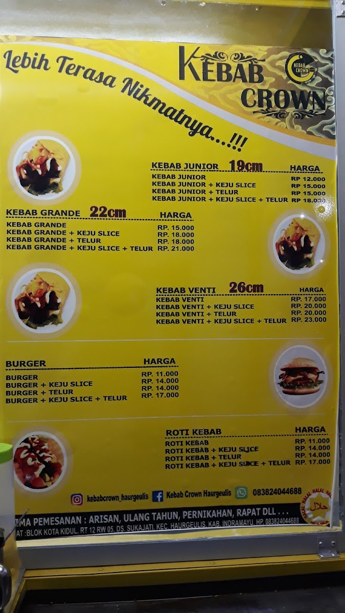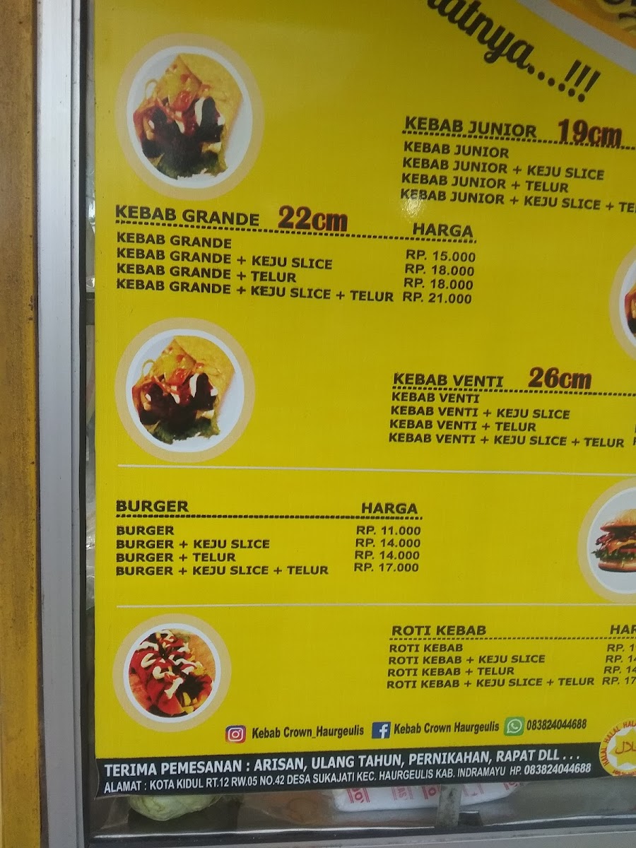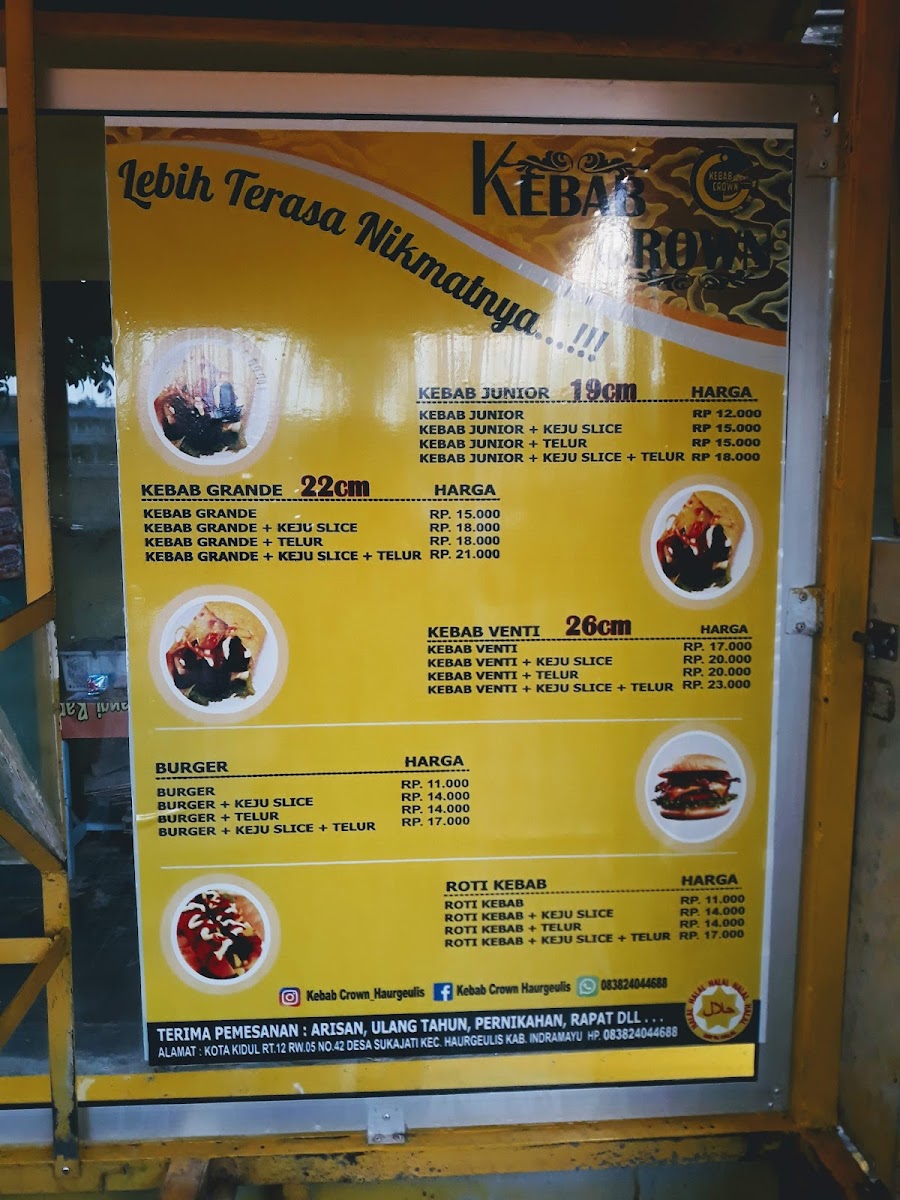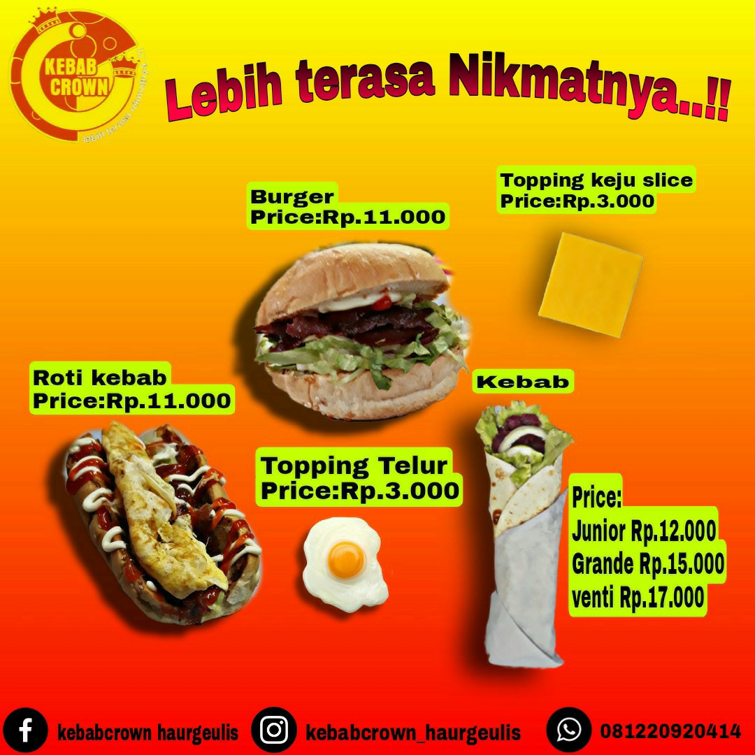 Kebab Crown Haurgeulis is a standout kebab shop located in the heart of Haurgeulis, Indramayu. This cozy spot brings fresh, flavorful kebabs that satisfy every craving. Their menu highlights include the Kebab Junior, a smaller kebab filled with tender meat, crisp lettuce, cucumber, and onions, dressed with customizable spicy sauce, mayonnaise, and tomato ketchup. For a heartier appetite, the Kebab Grande offers a larger portion, featuring smoked meat paired with the same fresh vegetables and sauces.